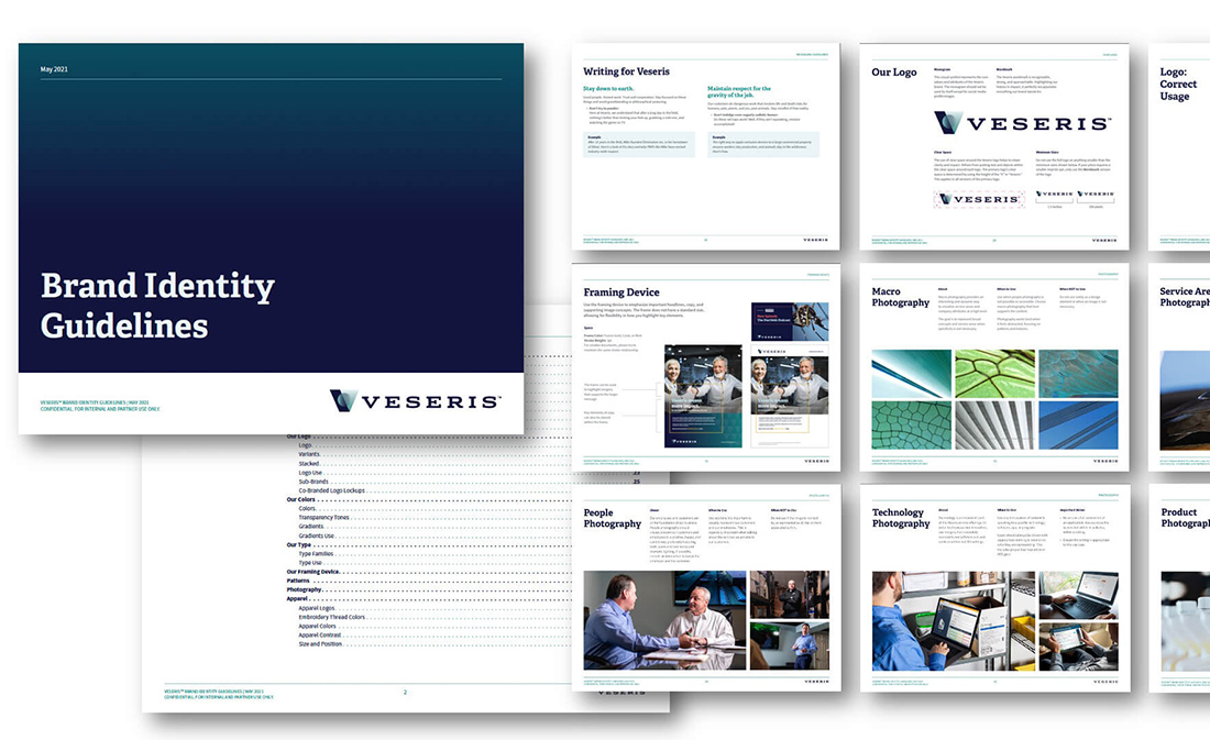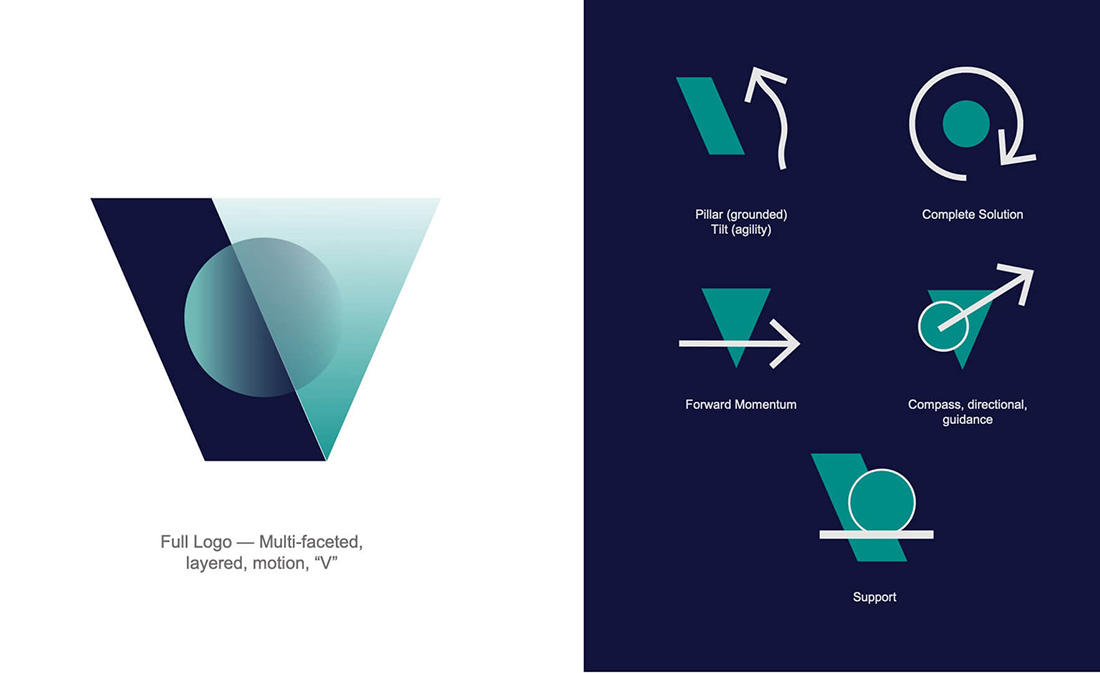 The logo mark was designed with key differentiators in mind. Veseris, a complete full-service distributor, has many benefits, and capturing these unique benefits in a logo mark that is abstract and purposeful was a fresh approach to their brand.